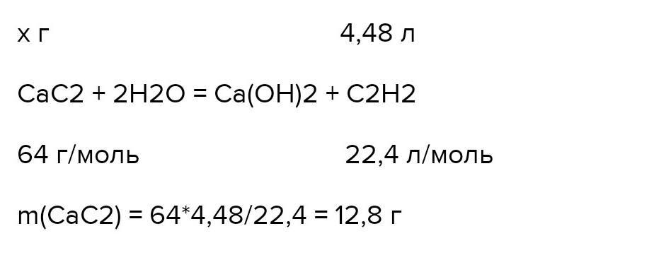 НЕГАЙНО!! обчисліть масу кальцій карбіду, необхідно для добування 4,48 л ацетилену. Будь ласка напишіть все ясно і з роз'ясненням. Дякую за відповідь