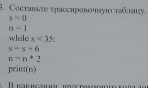 Исполнение цикла начинается с нулевого значения s и единичного значения n. Затем на каждой итерации переменная s увеличивается на 6, а переменная n умножается на 2. Цикл продолжается до тех пор, пока значение s не достигнет 35.