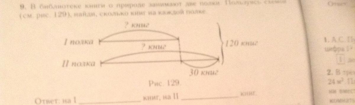 В библиотеке книги о природе занимают две полки найди сколько книг на каждой полке . На фотографии чертеж пожалуйста срочно надо