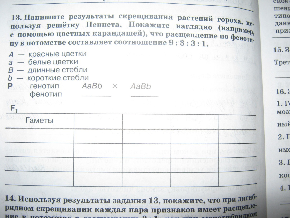 Напишите результаты скрещивания гороха , используя решетку Пеннета. (вложение)