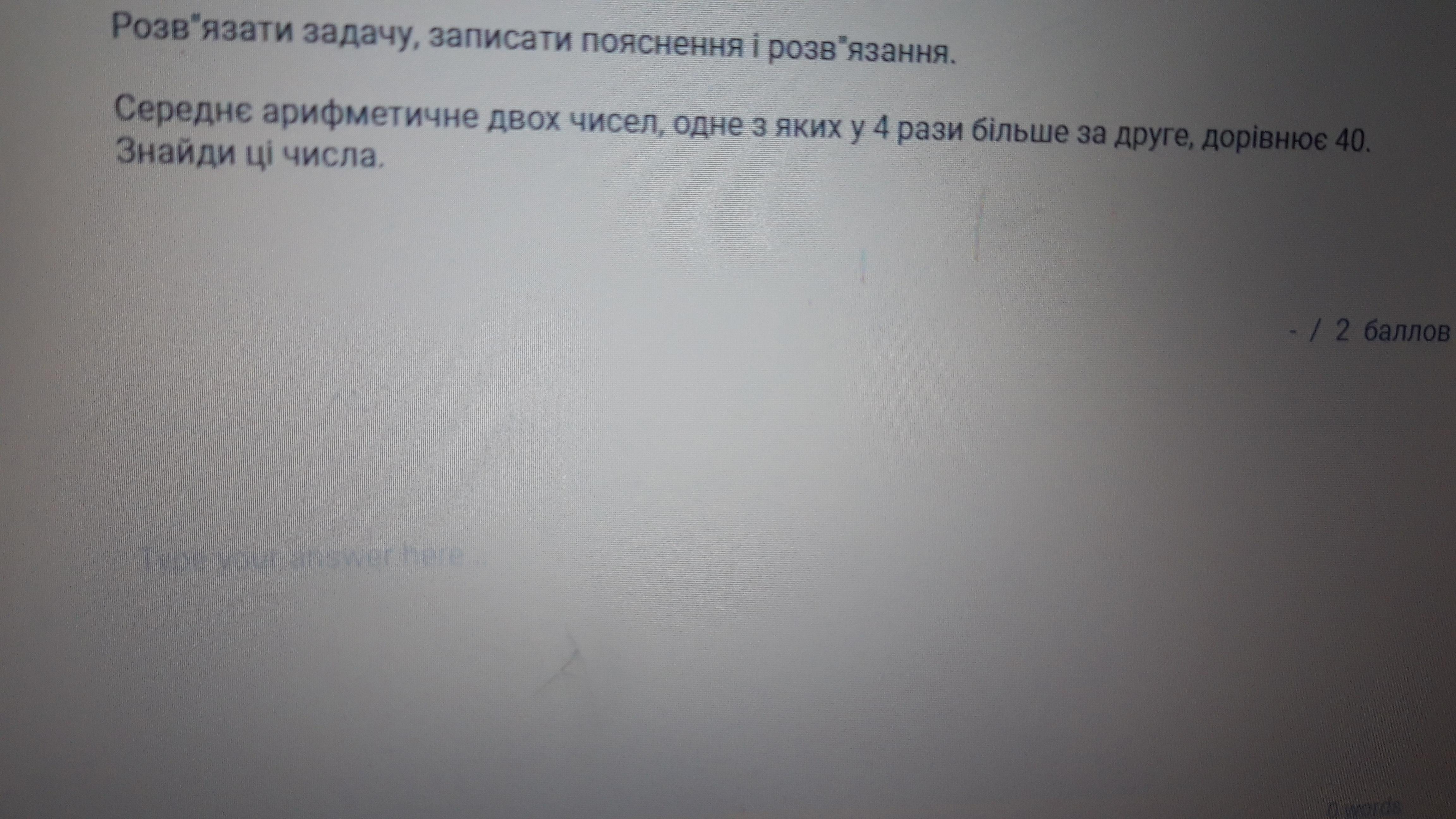 Одне з чисел - х, тоді друге число - 4х. Середнє арифметичне становить: