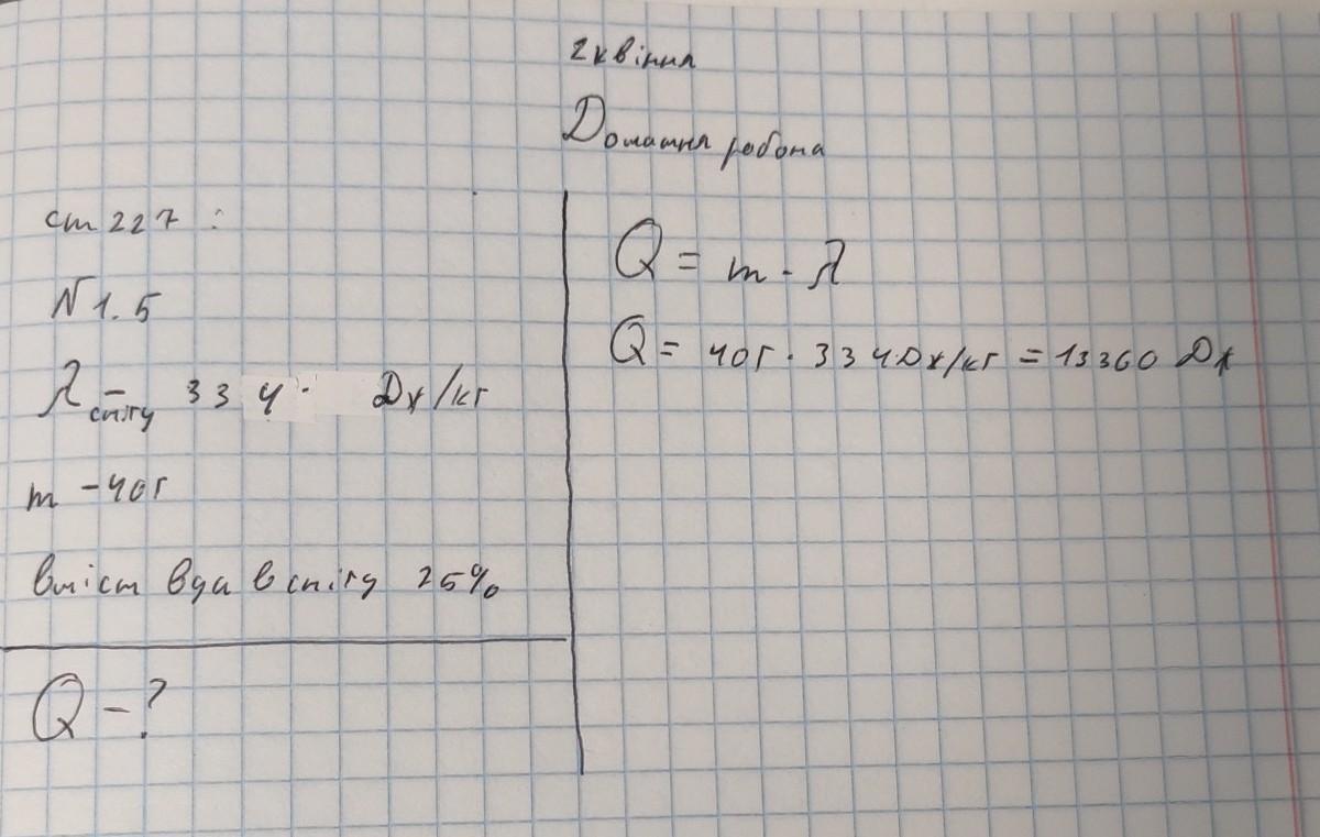 Хлопчик зліпив невеликий сніжок і тримав його в руці доти, поки він не розтанув. Яку найменшу кількість теплоти було передано сніжку, якщо його маса дорівнювала 40г і він містив 25% води ?
