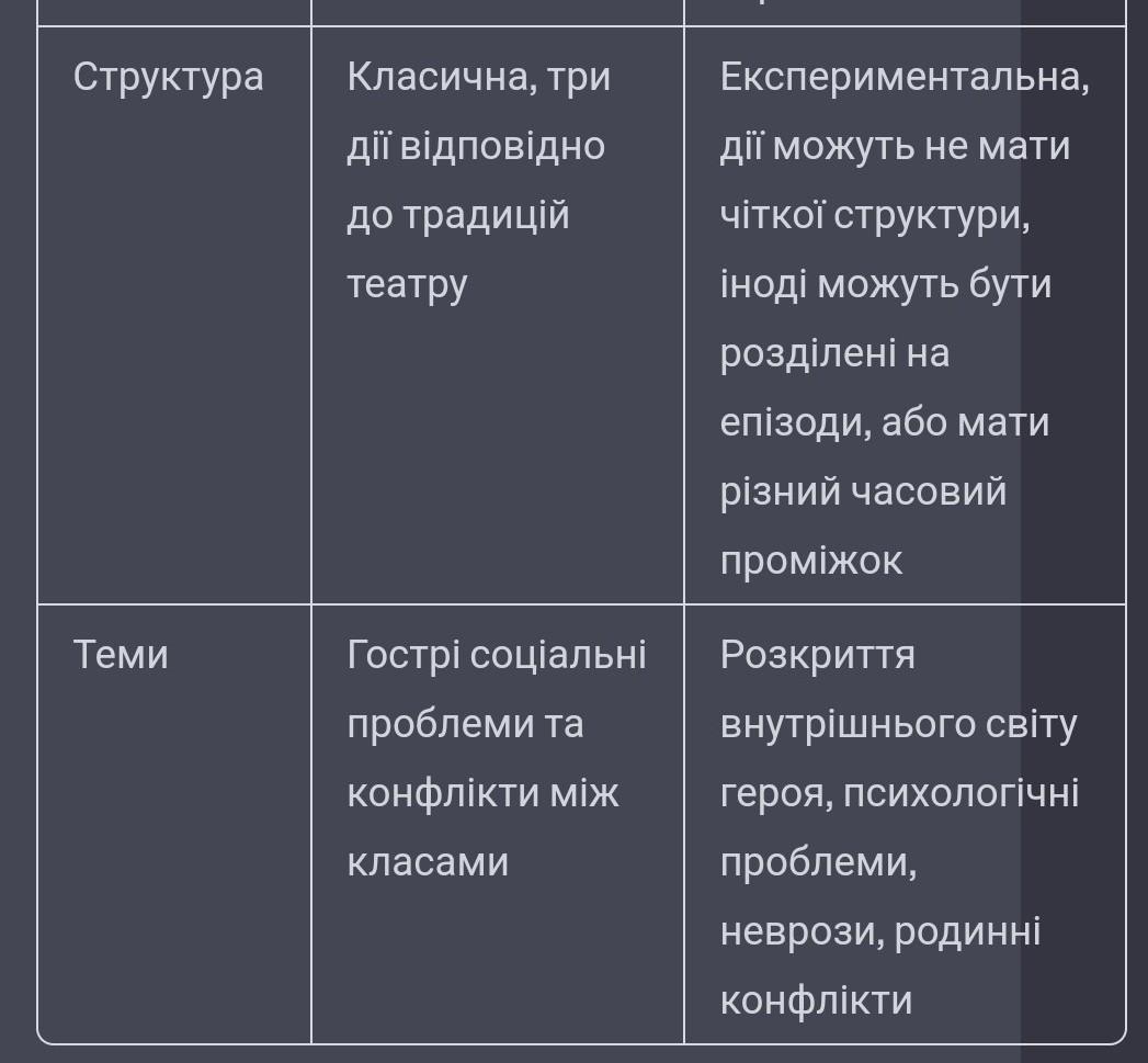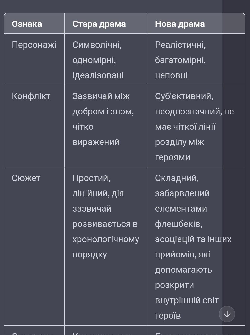 Сласти таблицю відмінності "стара драма" "нова драма".