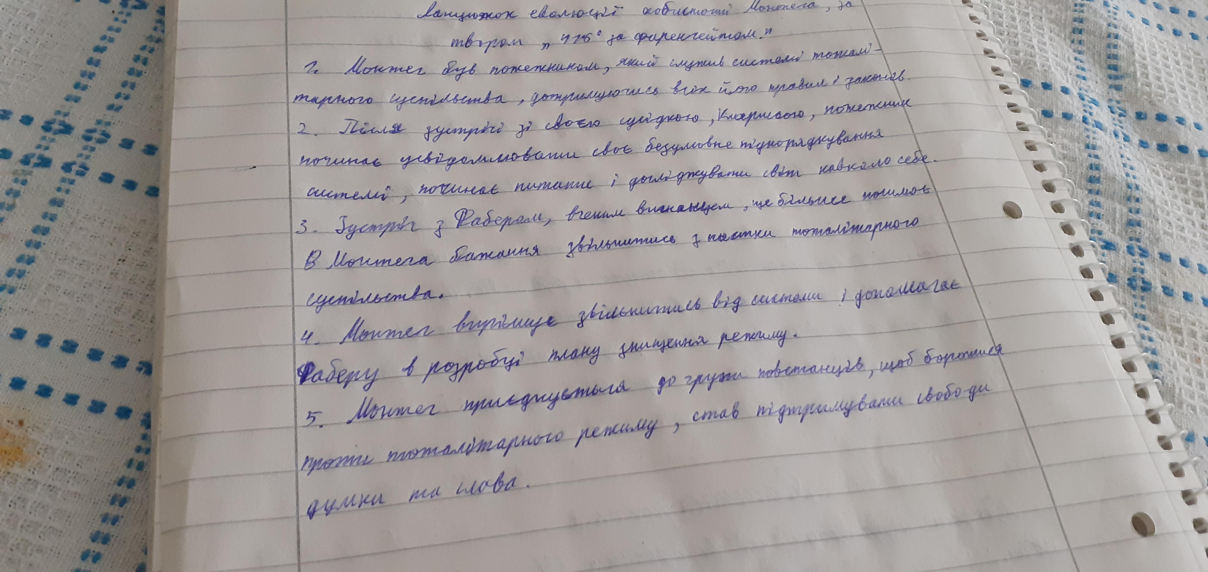 Складіть ланцюжок еволюції особистості у тоталітарному суспільстві на прикладі Монтега.