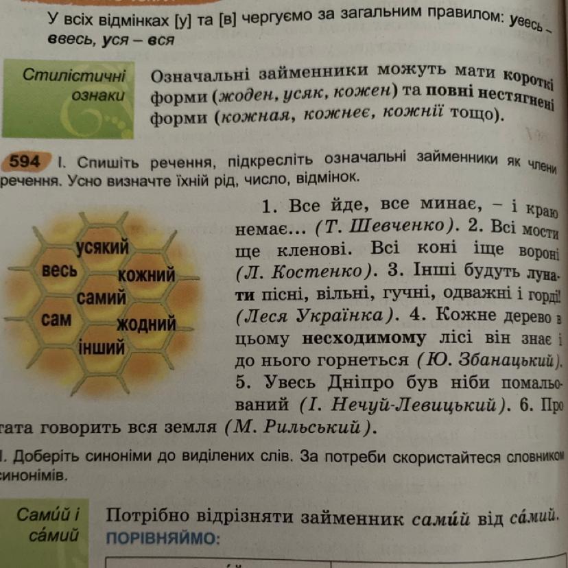 594 1. Спишіть речення, підкресліть означальні займенники як члени