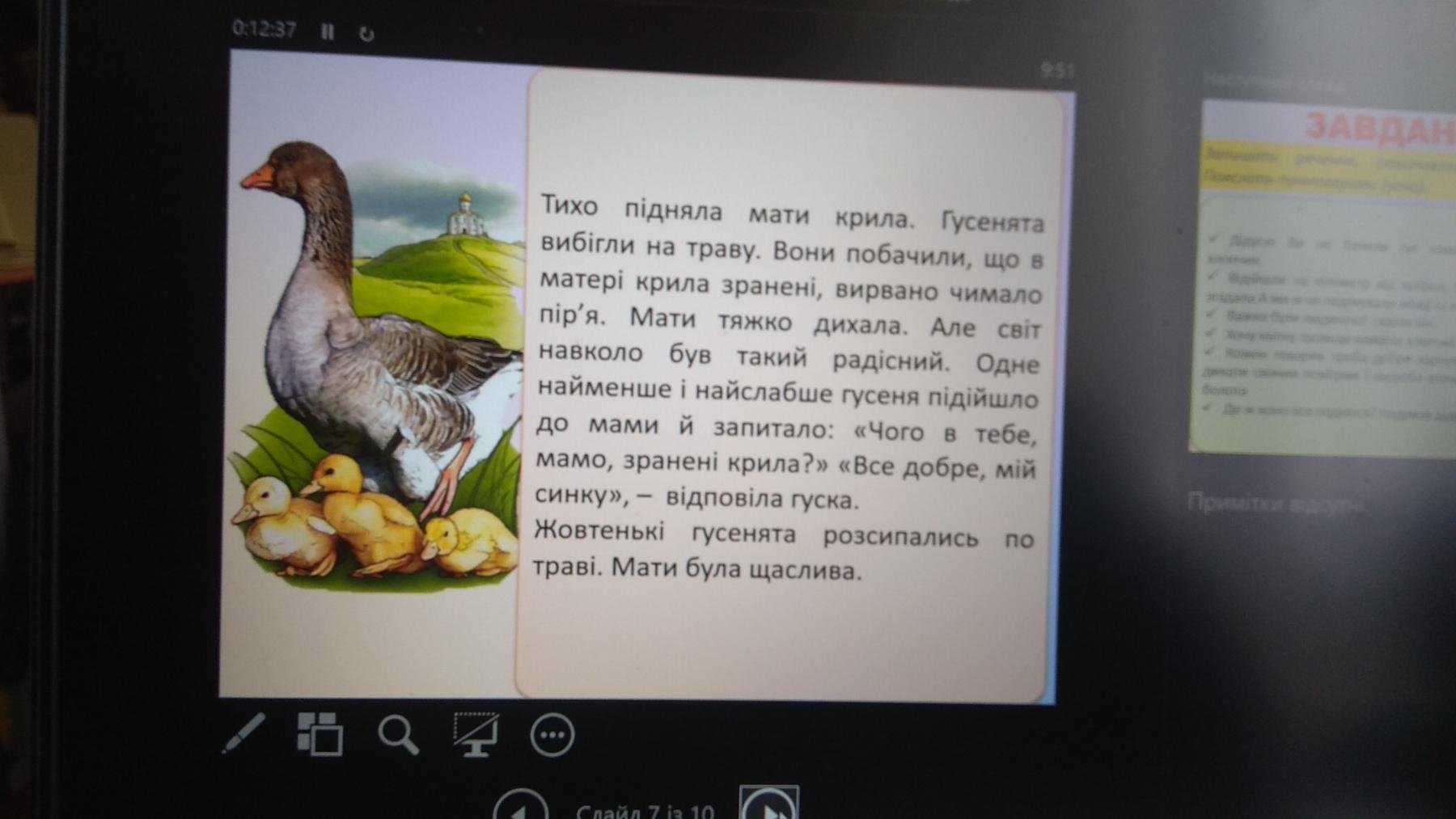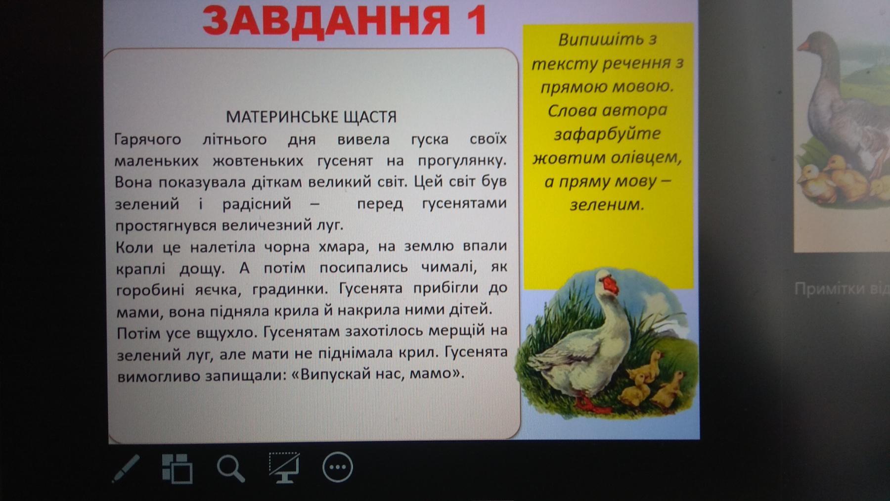 1. Гусенята вимогливо запищали:"Випускай нас, мамо".