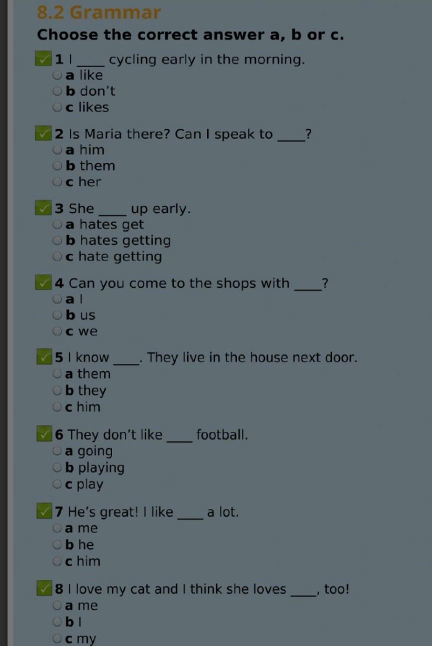 От 1) I like 2) Her 3) Hates get 4) We 5) Him 6) playing 7) he 8) me