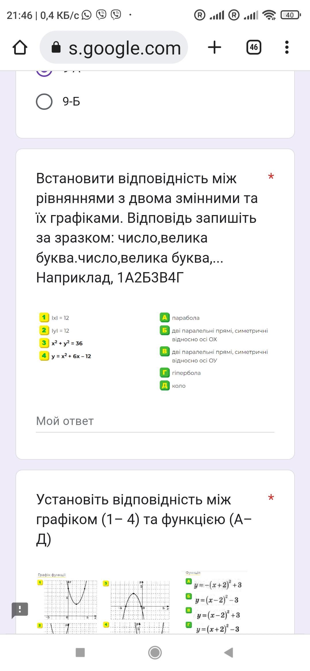 Встановити відповідність між рівняннями з двома змінними та їх графіками.|х|=12 |у|=12 х2+у2=36 у=х2+6х-12