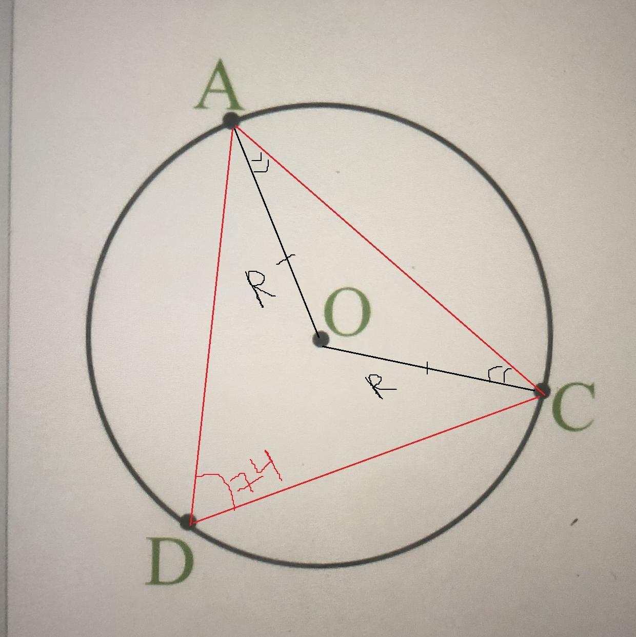 ∠ADC- вписанный угол, ∠СОА- центральный.
