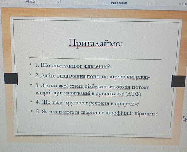1. Ланцюг живлення - це послідовність організмів, в якій кожен наступний організм їсть попереднього, тобто передає йому енергію та поживні речовини, що отримані з рослин або інших тварин.