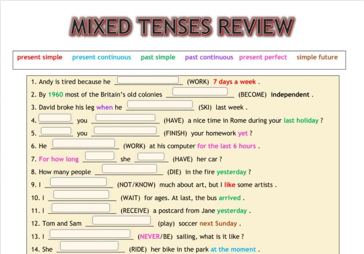 надо слова в скобках поставить как в времени (то что на картинке) если что с 1-14