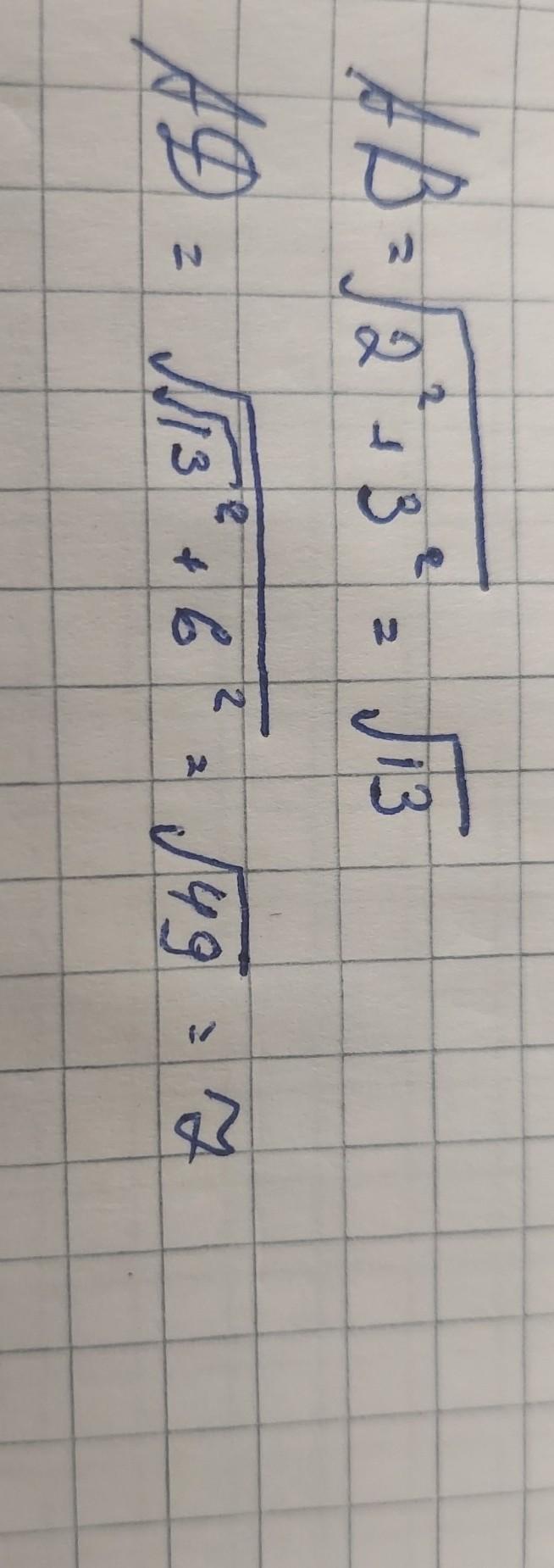 По теореме Пифагора АD²=АВ²+ВD², АD²=√13²+6²=13+36=49, АD=√49=7