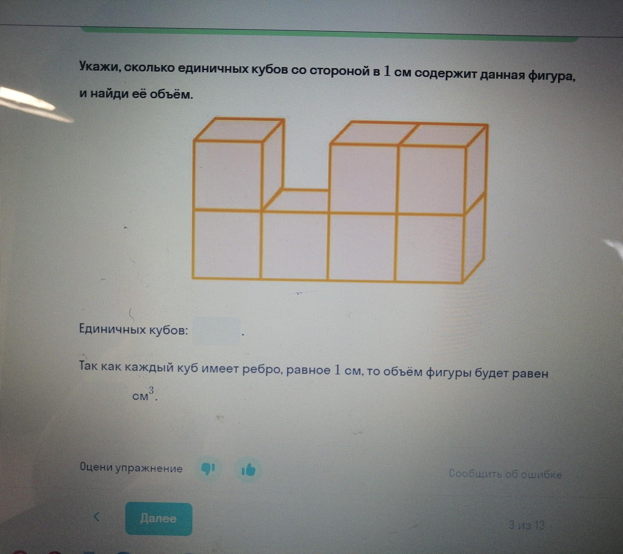 Объём фигуры:7см³