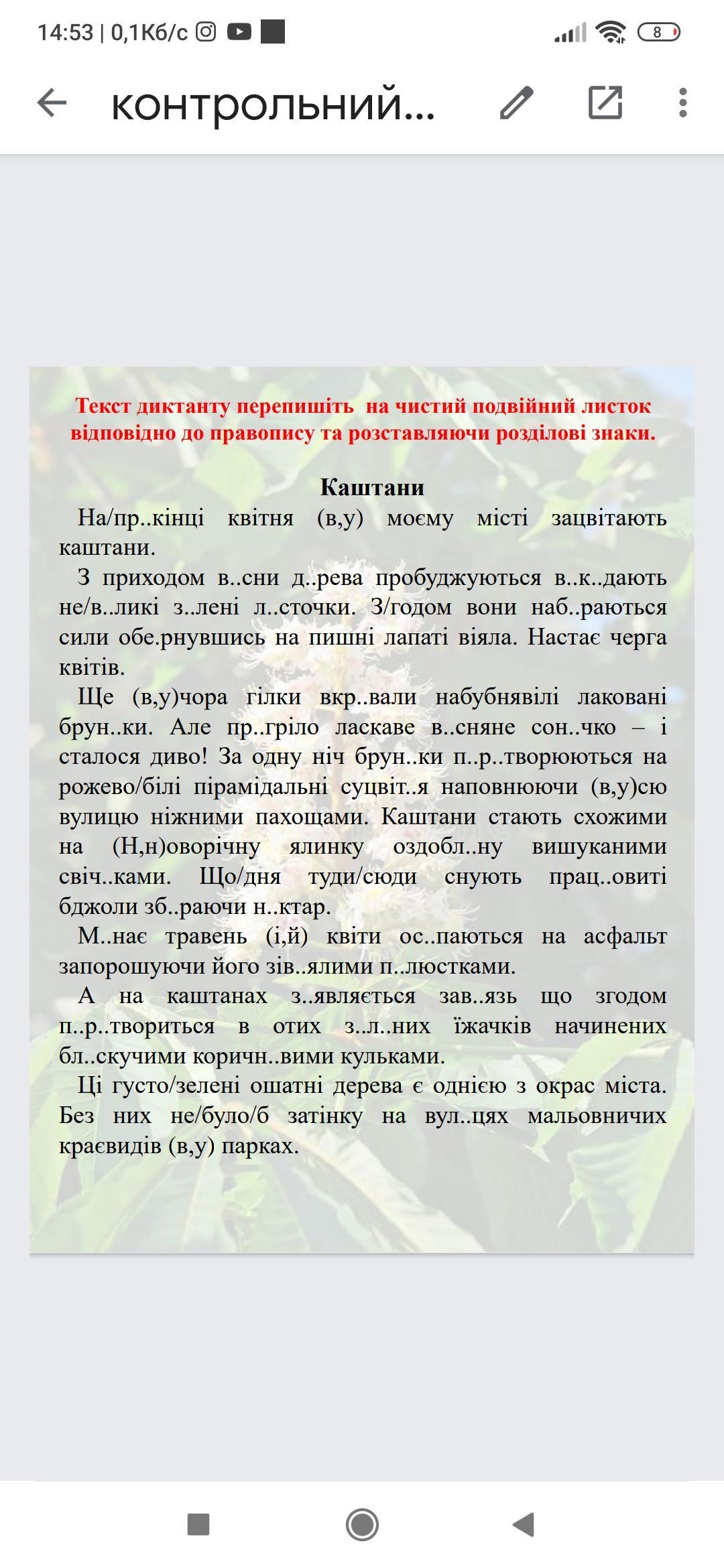 Минає травень i квіти осипаються на асфальт, запорошуючи його зів'ялими плюстками. А на каштанах з'являється зав'язь, що згодом перетворюється отих зелених їжачків начинених блискучими коричневими кульками.