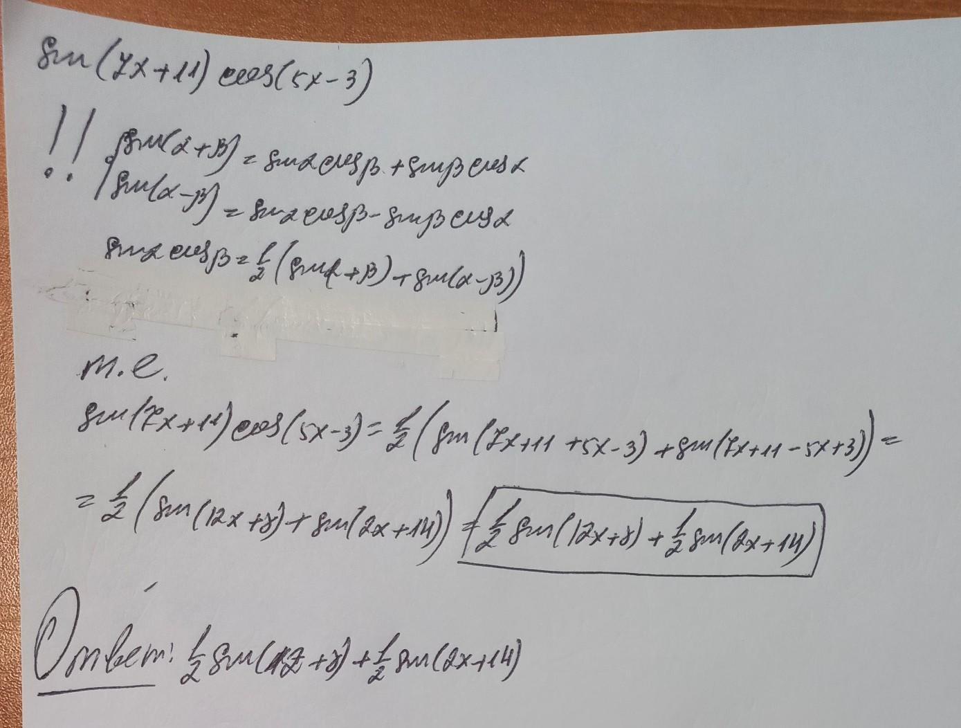2. Представьте в виде суммы или разности выражение: sin(7x + 11) * cos(5x - 3)