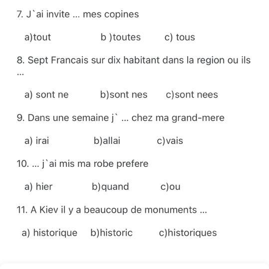Відповідь:7) b. 8) а. 9) а. 10) а. 11) с.