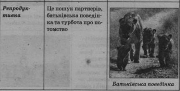 • Репродуктивна поведінка тварин: пошук партнерів, батьківська поведінка та турбота про потомство.