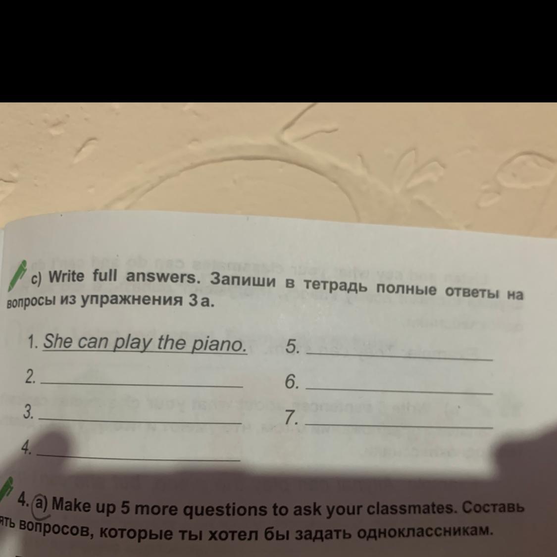 Write full answers. Запиши в тетрадь полные ответы на вопросы из упражнения 3а