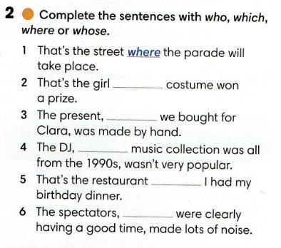 2. Who 3. which 4.Whose 5. where 6. who