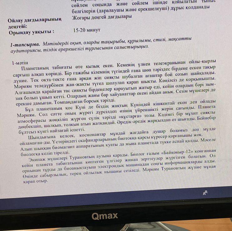 1-тапсырма. Мәтіндерді оқып, оларды такырыбы, құрылымы, стилі, мақсатты