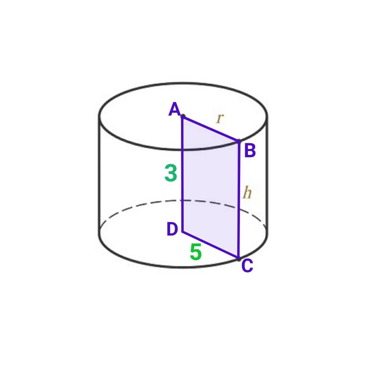Данное тело вращения - цилиндр с высотой h = AD = 3 см, радиусом r = DC = 5 см.