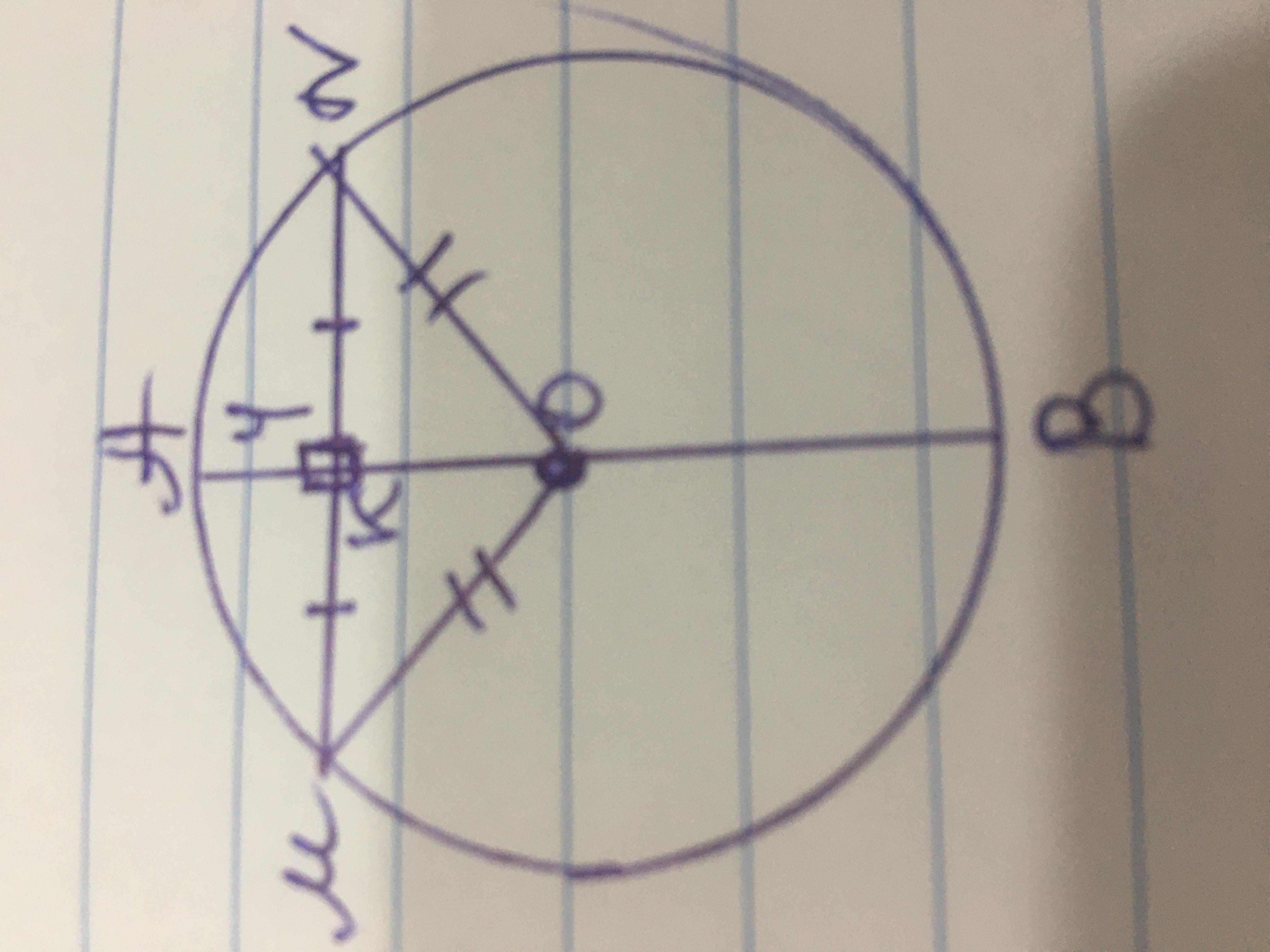 Смею предположить,что одна из хорд-это диаметр,если диаметр перпендикулярен к хорде,то он делит хорду МN на две равные части