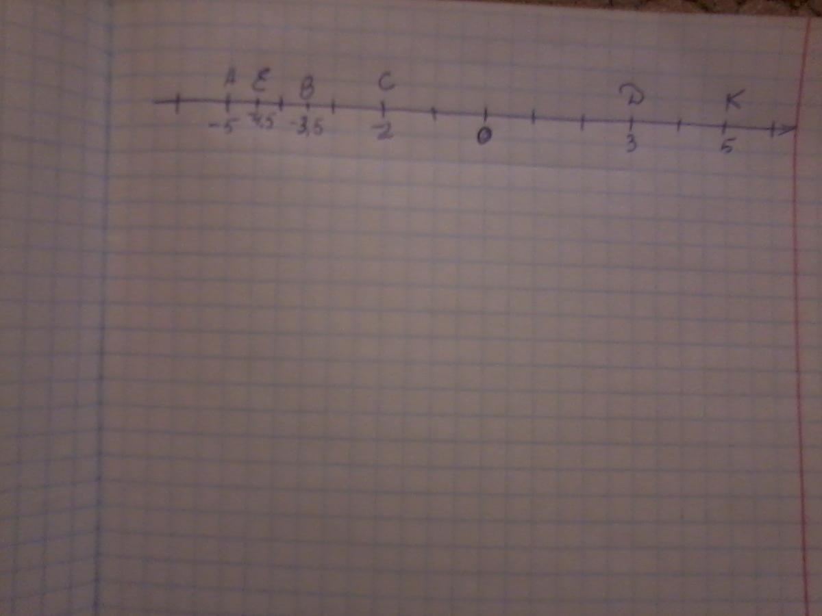 Начертите координатную прямую, выбрав еди- ничным отрезком 1 клетку. Покажите на этой прямой точки А(-6); В(+9); С(0,6); М(-3,5); D(2,75).