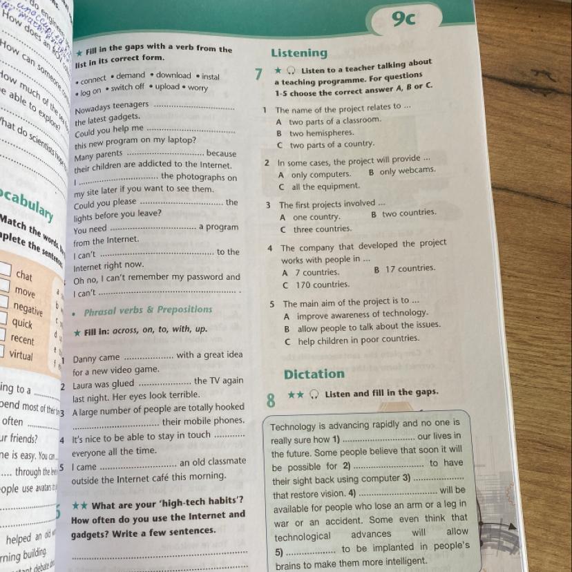 Nowadays teenagers demand the latest gadgets.2 Could you help me instal this new program on my laptop?3 Many parents worry because their children are addicted to the Internet.4. I upload the photographs on my site later if you want to see them.5 Could you please switch off the lights before you leave?6 You need to download a program from the Internet.7 I can't connect to the Internet right now.8 Oh no, I can't remember my password and I can't log on.