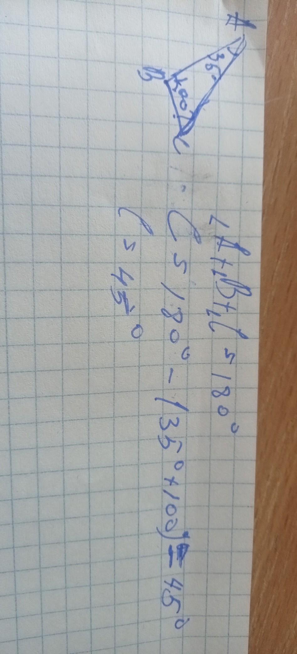 Постройте треугольник ABC та, что градусная мера A=35°, B=100°. Какой процент от суммы углов треугольника составляет угол C плс фото