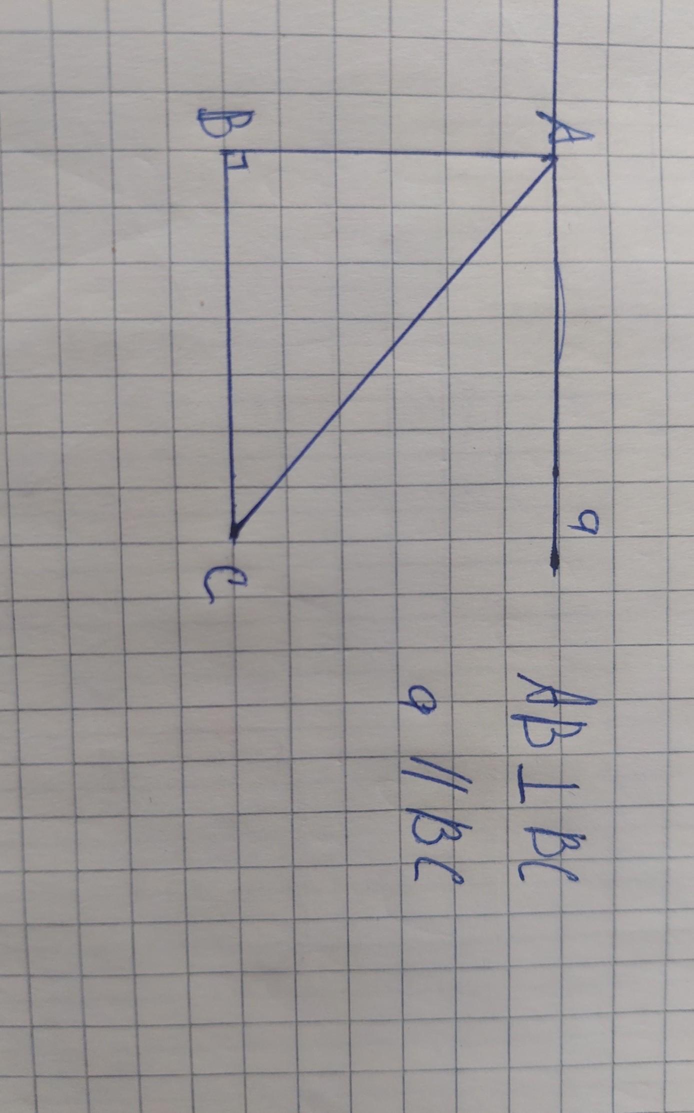 Побудуйте трикутник ABC, у якому сторони AB і ВС перпендикулярні. Проведіть через точку A пряму, паралельну стороні BC.