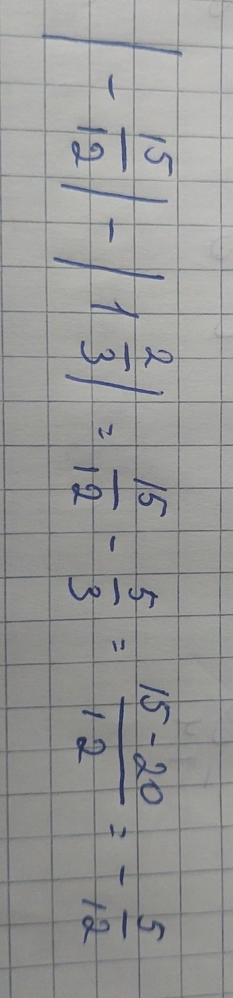 |-15/12| - |1 2/3| = 15/12 - 1 2/3 = 15/12 - 5/3 =