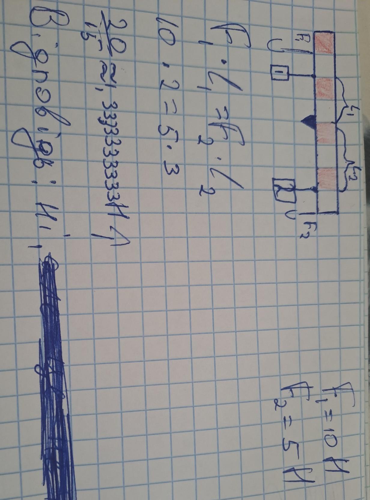 Чи перебуває важіль у рівновазі, якщо сила F1=10 Н має плече d1=2 см, а сила F2=5 Н має плече d2=3 см? З розвязком будь ласка!