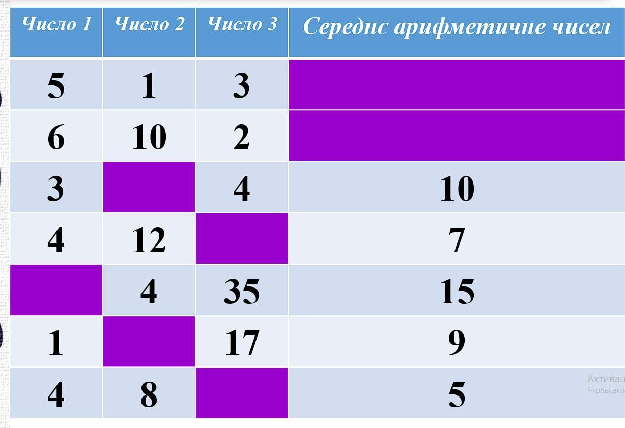 В 1 и 2 надо найти Середнє арифметичне число а в 3, 4, 5, 6, 7 надо найти неизвесное число