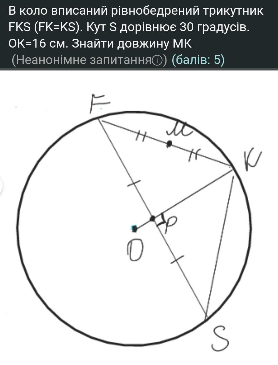 МК = FK / 2 = 32/2 = 16 см