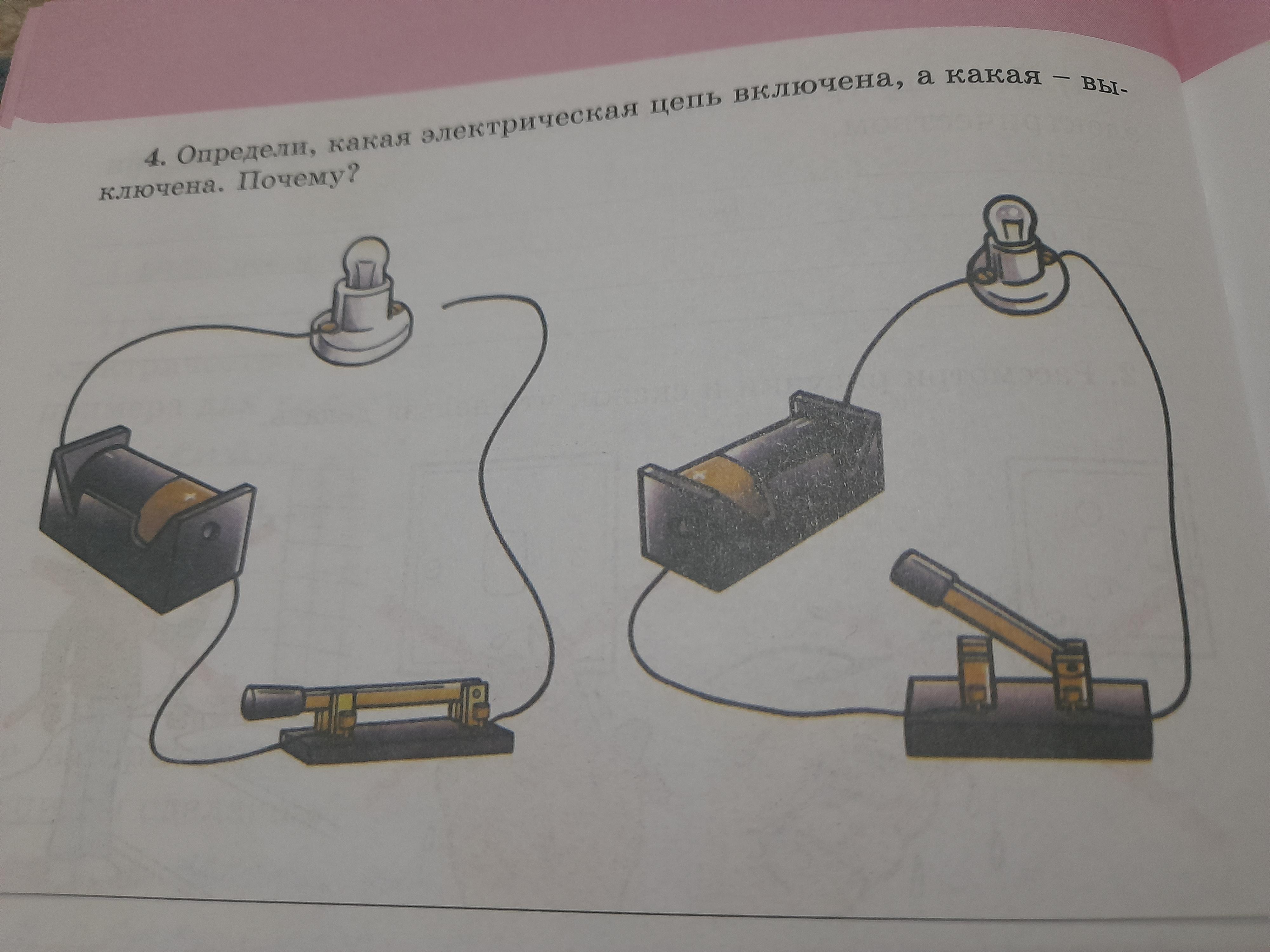 у первой провод не подключён к лампе, а у второй подключён и лампа горит