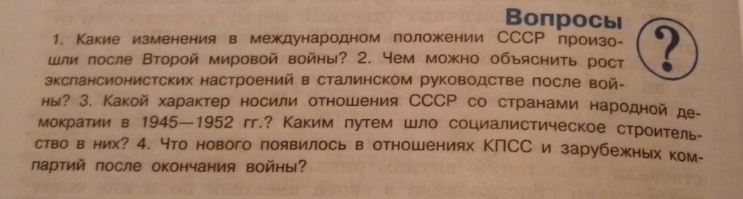 1)После 1945 г. практически ни одна серьезная международная проблема не могла быть решена без участия СССР.