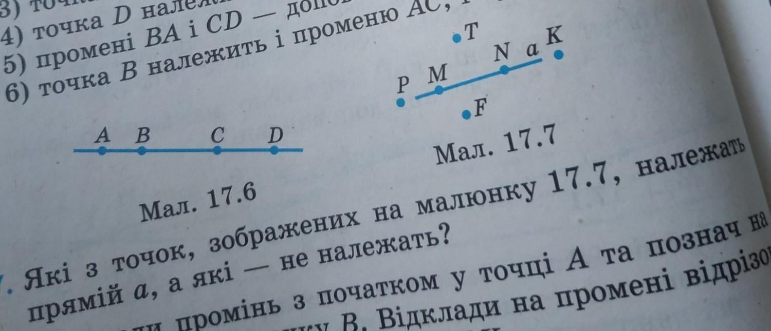 Які з точок, зображених на малюнку 17.7, належать прямій a, а які - не належать?