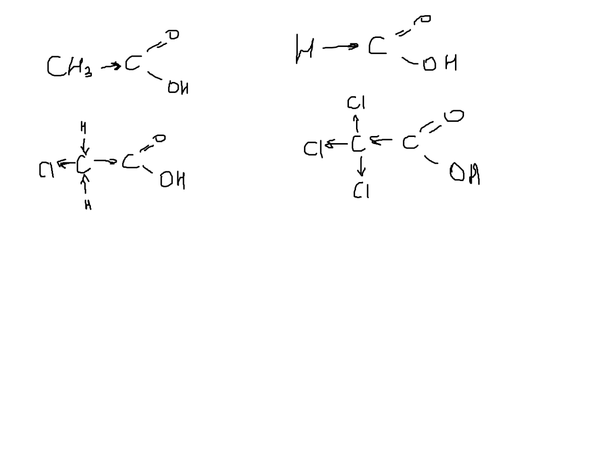 Расположить в порядке увеличения кислотности : Cl3C-COOH, CH3COOH, HCOOH, ClCH2COOH