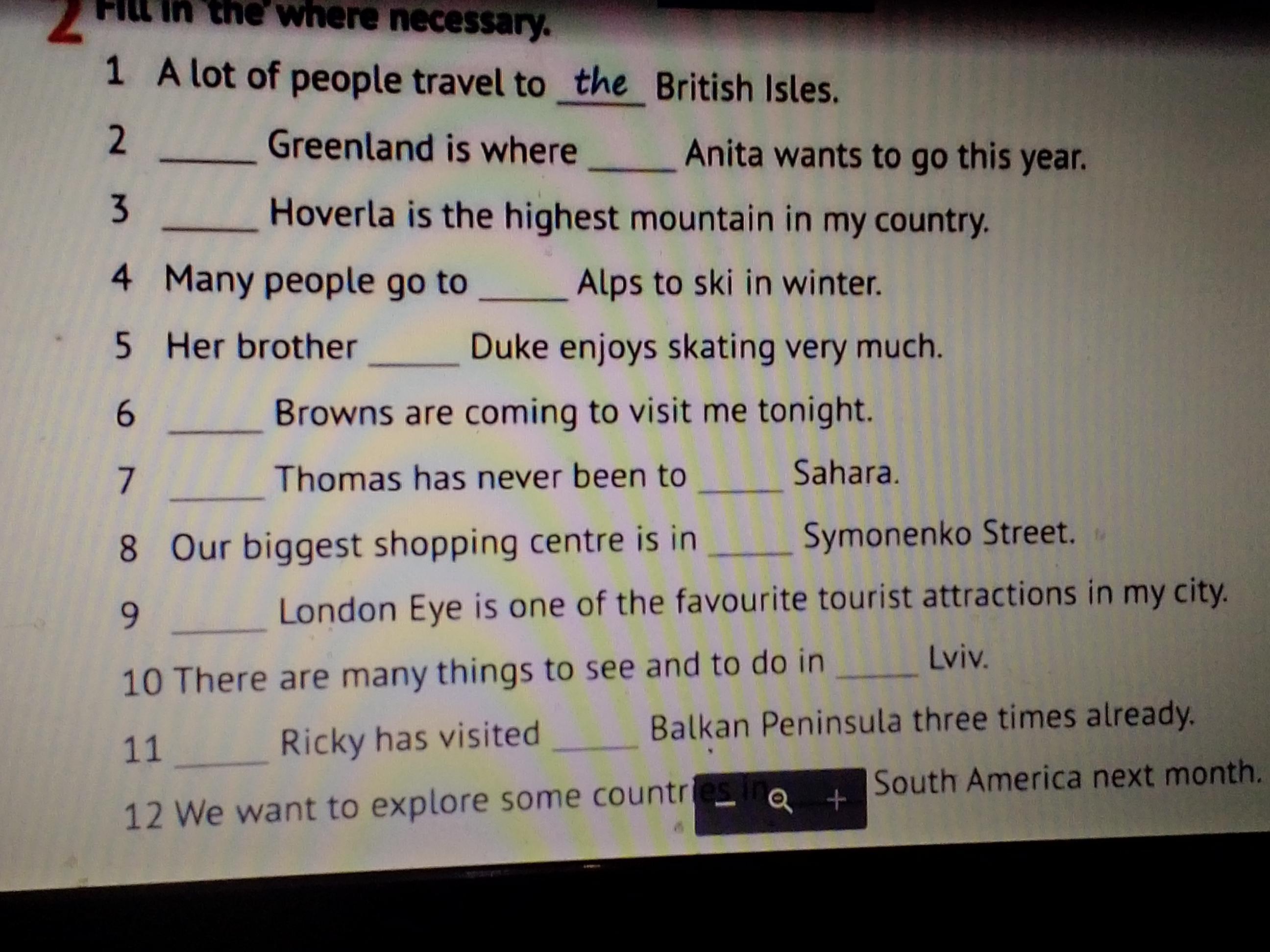 2) The,- , 3) The, 4) The, 5) -, 6) The, 7) -, the, 8) -, 9) The, 10) -, 11) -, the, 12) нету.