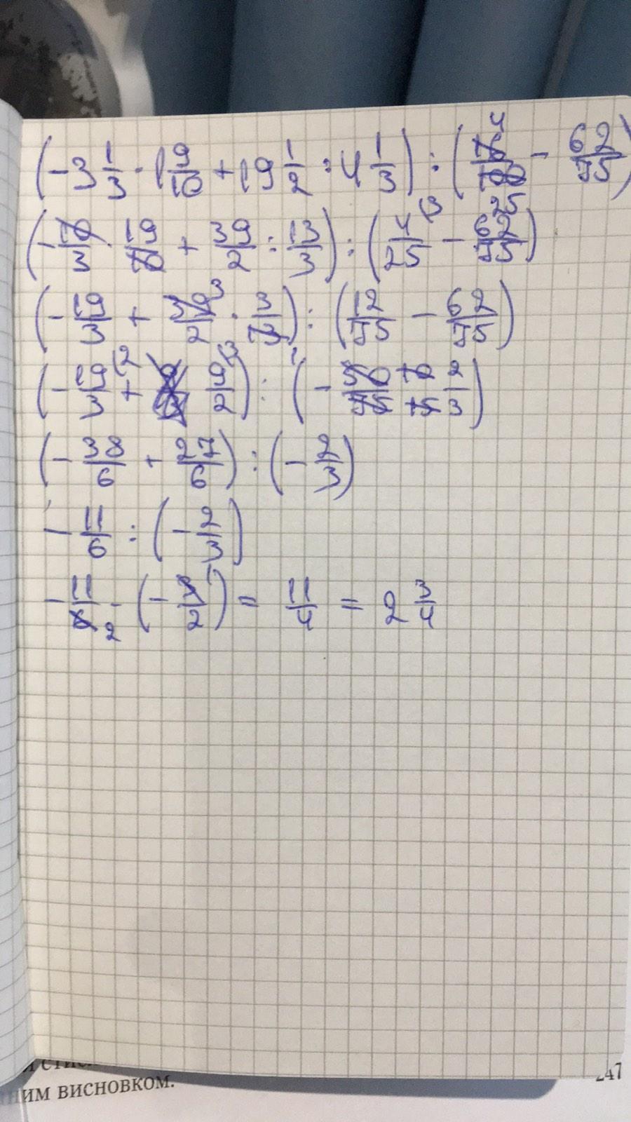 (-3 1/3•1,9+19,5:4 1/3):(0,16-62/75) СРОЧНО !!!!!!!!!!!!! Даю 35 балів вирахуйте по діям будь ласка