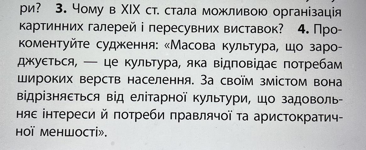 4.Судження про те, що масова культура - це культура, яка відповідає потребам широких верств населення і відрізняється від елітарної культури, є правдивим. Масова культура зазвичай створюється з метою задоволення масових потреб, таких як розваги та розвиток особистості, і є доступною для широкого загалу. В той же час елітарна культура спрямована на високоосвічені верстви суспільства і має вищий рівень вимог до сприйняття та розуміння.