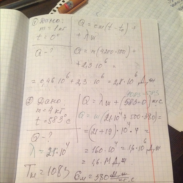 1. Определите количество теплоты, необходимое для превращения 1 кг воды, взятой при температуре 0 С, в стоградусный пар.
