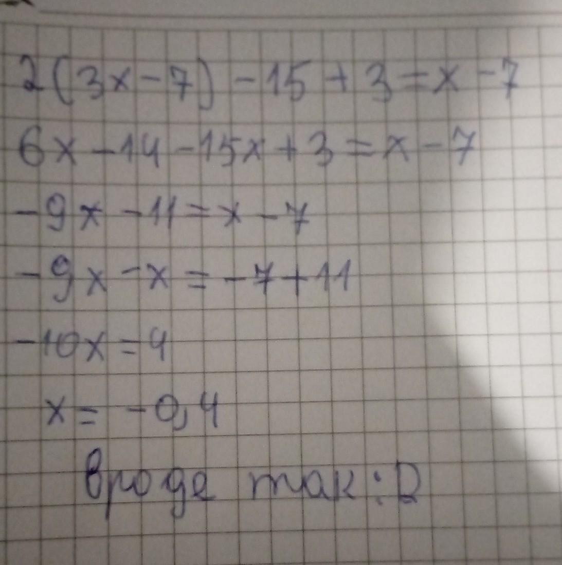 Покрокове пояснення: 2(3х-7)-15х+3=х-7