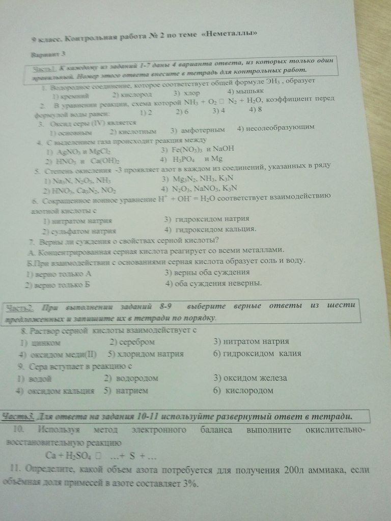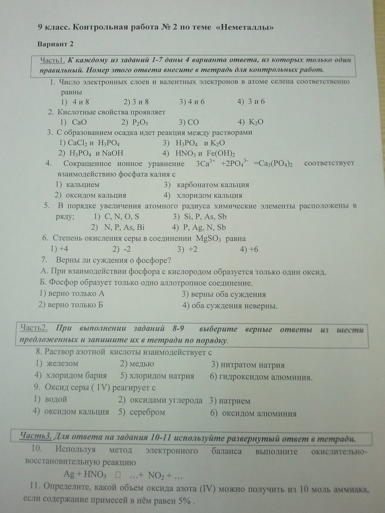9 класс, неметаллы, пожалуйста на все если можете.. Или хотя бы по 1 ответу на вопрос который знаете.