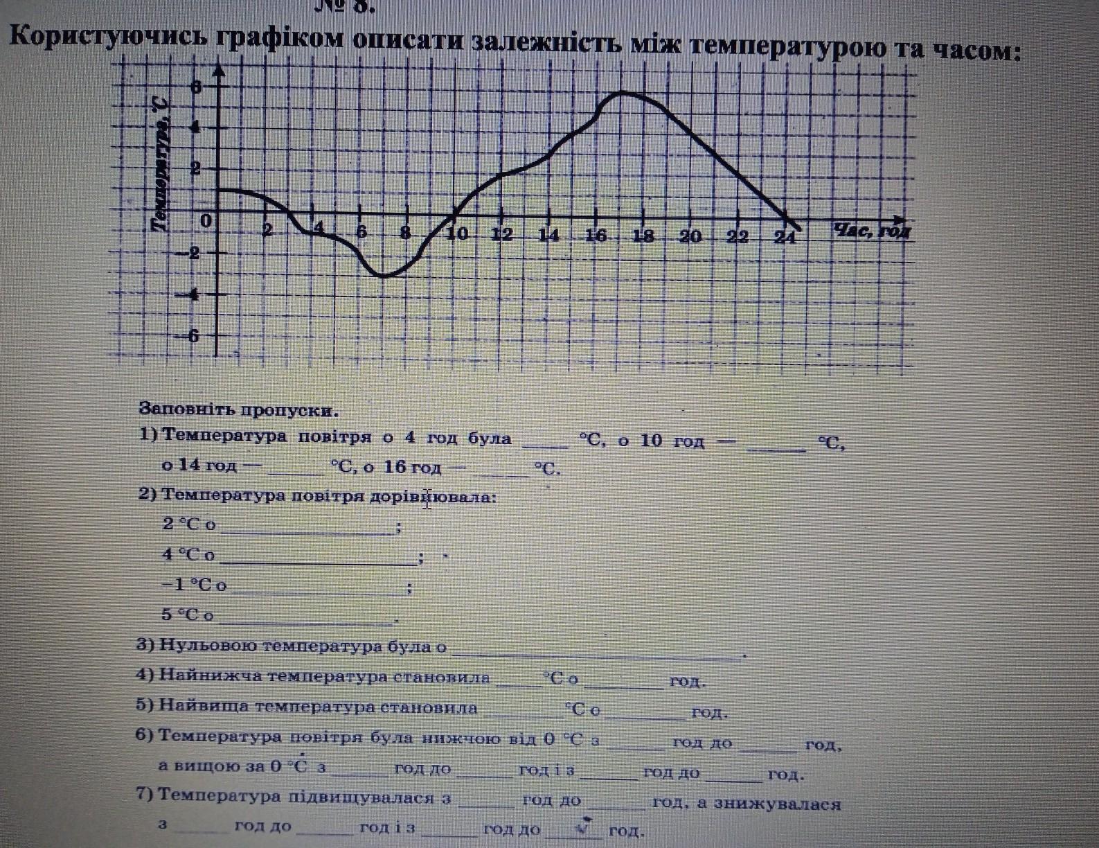 1. в 4 години була -1 градус о 10 годині 0 градусів о 14 годині 3 градуси о 16 годині 5 градусів