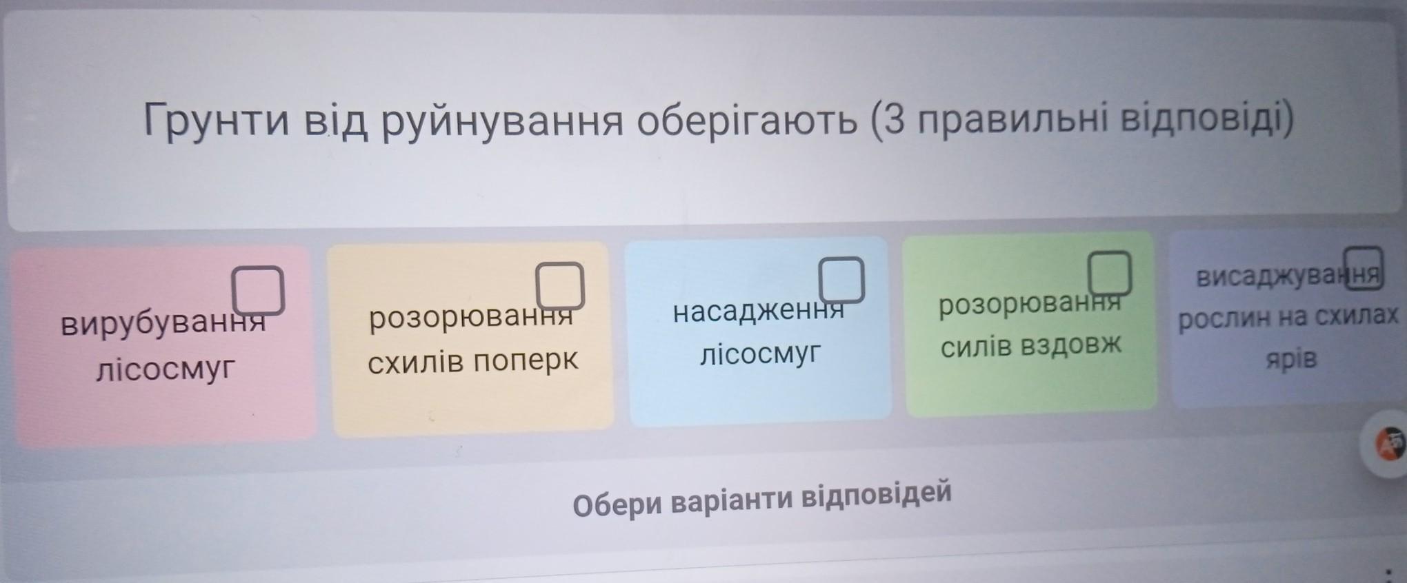 Розорювання схилів поперек, насадження лісосмуг, висаджування рослин на схилах ярів