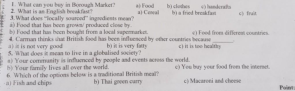 4. Carmen thinks that British food has been influenced be other countries because a) it is not very good