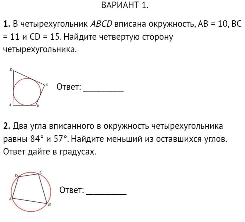 четырехугольник можно описать около окружности тогда и только тогда когда