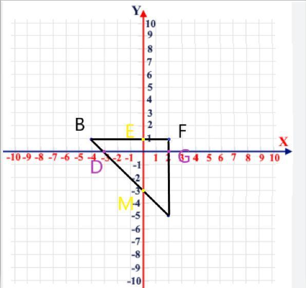 на координатній площині трикутник FBE,якщо F(2;1), B(-4;1),E(2;-5). Знайдіть координати точок перетину сторін трркутника з осям Ox і Oy.