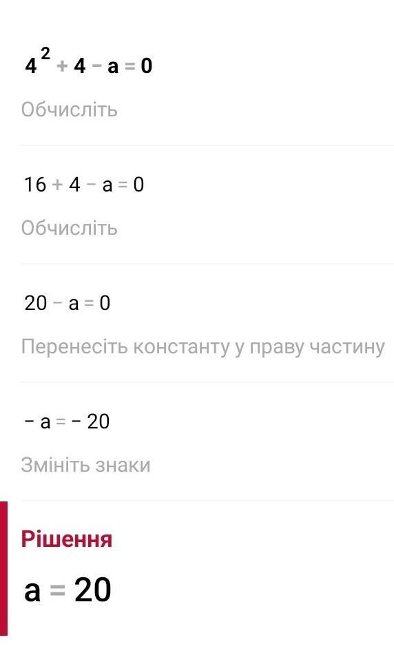 Відповідь: a дорівнює 20